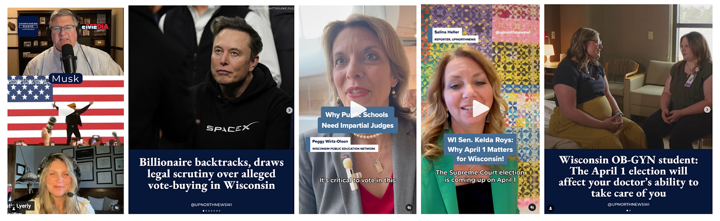 Our local newsroom in the state, UpNorthNews, has built one of the largest news and political audiences in the state on social media platforms and has been covering this race day in and day out. In the past two weeks, UpNorthNews has published over 74 original stories about the election on Instagram, 81 on Facebook, and 63 on TikTok. In addition, our WI reporters have been covering the race extensively for months in UpNorth’s free email newsletters that reach over 286,000 subscribers in the Badger State each week.